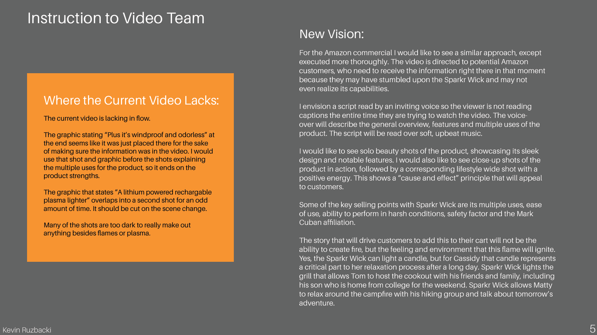 Power Practical needed a complete revamp of the visual marketing for their Sparkr Wick Electric Lighter, specifically for the items Amazon listing. I was tasked with doing full creative development of these materials so they could easily relay all the information to their in-house creative team to produce the content. Check out the presentation below!